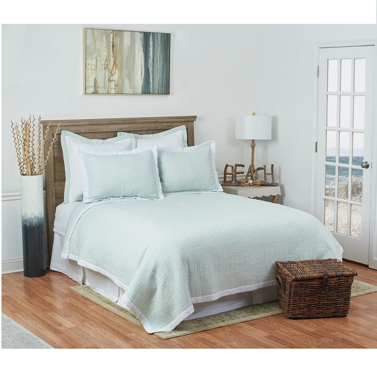 Bring fresh style and cozy comfort to your bedroom with the C&F Home Kinsley Sea Glass quilt set. This full queen 3-piece set features a reversible coverlet in a soothing sea glass green that brightens any space. Made from 100% cotton with a soft poly-cotton fill, the coverlet offers breathable warmth without the weight. The set includes two standard shams sized 20 by 26 inches, perfectly matching the 90 by 92 inch coverlet. Easy to care for and durable, this quilt set is a simple way to refresh your bedding with classic style and comfort.