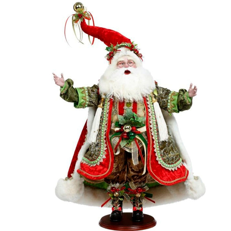 Add timeless charm to your holiday décor with the Mark Roberts Holly and Ivy Santa figurine. Standing 25.5 inches tall, this festive collectible features Santa dressed in rich green and red with gold accents, holly trim, and ivy embellishments that bring his classic look to life. Crafted with Mark Roberts’ signature attention to detail, this piece includes a registration card and a numbered certificate of authenticity. Packaged in a collectible box, it’s perfect for seasonal displays or as a standout addition to any collector’s lineup.
