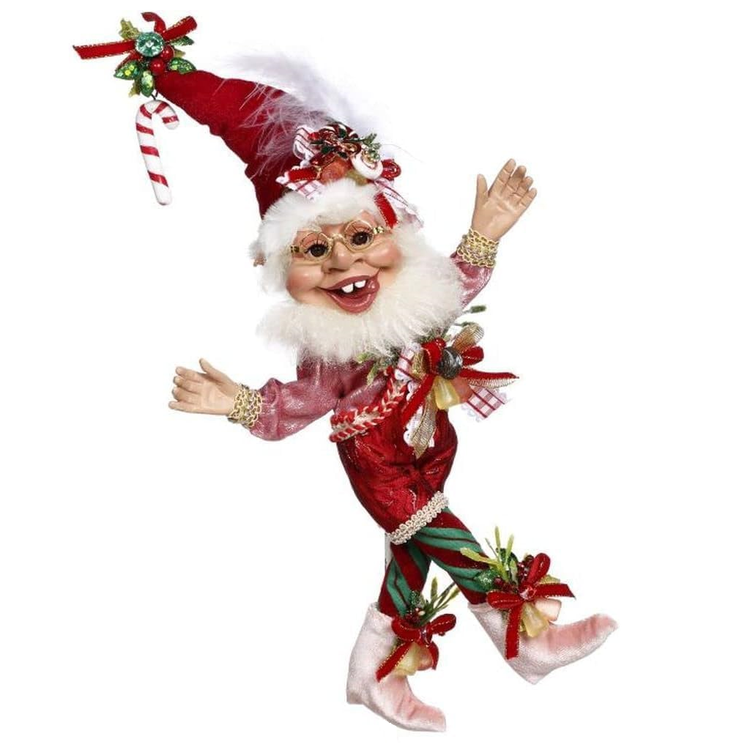Add a touch of whimsy and sugary charm to your seasonal display with the Mark Roberts Sweet Shop Elf. Standing 10.5 inches tall, this small yet detailed collectible is bursting with personality and holiday delight. Dressed in candy-themed attire with vibrant colors, glittering accents, and handcrafted detail, this elf looks like he just stepped out of a festive bakery.