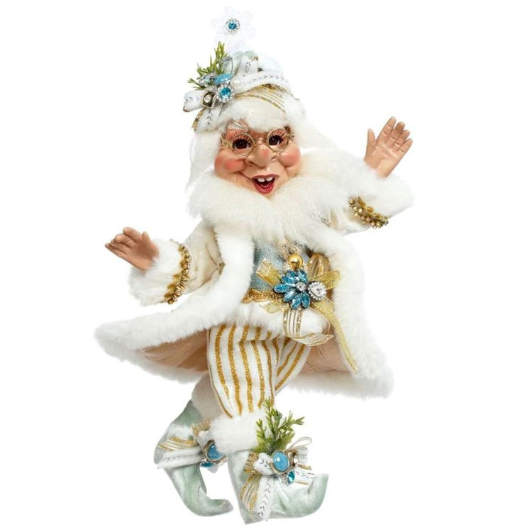 Bring a flurry of festive fun to your seasonal decor with the Mark Roberts Let it Snow Elf. Standing 11 inches tall, this handcrafted figure is full of winter charm and joyful personality. Dressed in cool-toned fabrics, metallic trims, and textured details, this elf captures the magic of a snow-filled season.