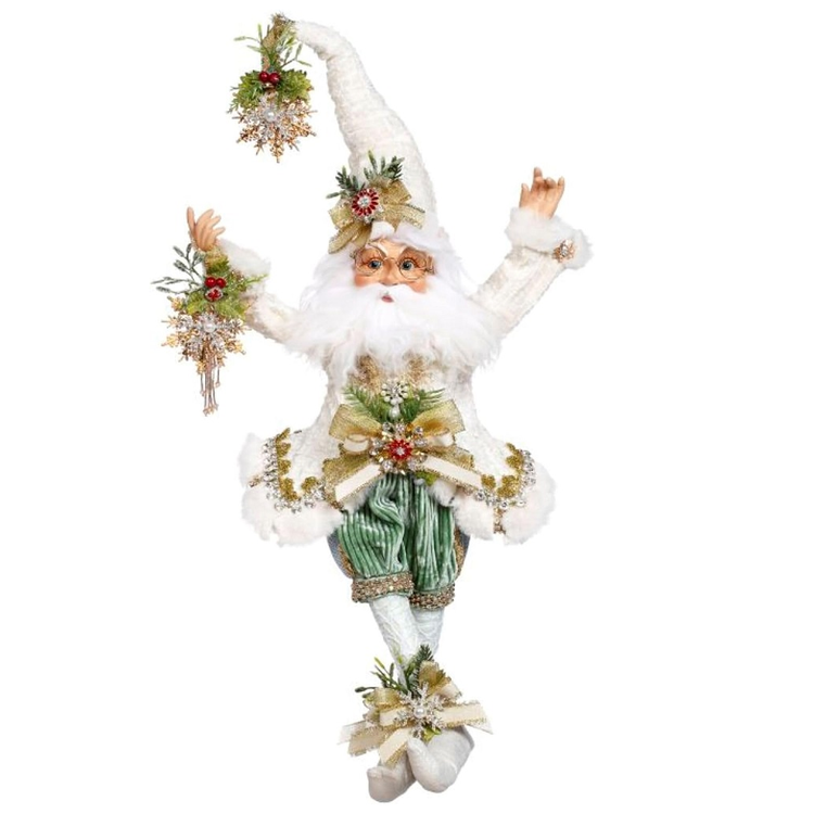 This handcrafted elf is outfitted in layered premium fabrics with snowflake-inspired accents and shimmering touches. The expressive face is full of personality, and the fully wired body allows for easy posing—perfect for festive scenes on mantels, shelves, tabletops, or wreaths.