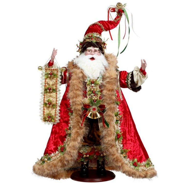 Make a bold holiday statement with the Mark Roberts Sleighbells Santa figurine. Standing 24 inches tall, this collectible features Santa in a rich red outfit trimmed with faux fur, gold accents, and detailed sleigh bell embellishments. Every inch of this piece reflects the craftsmanship and festive personality Mark Roberts figurines are known for. It includes a registration card and a numbered certificate of authenticity to confirm its status as a true collectible. Packaged in a collectible box, it’s perfect for display, storage, or gifting.
